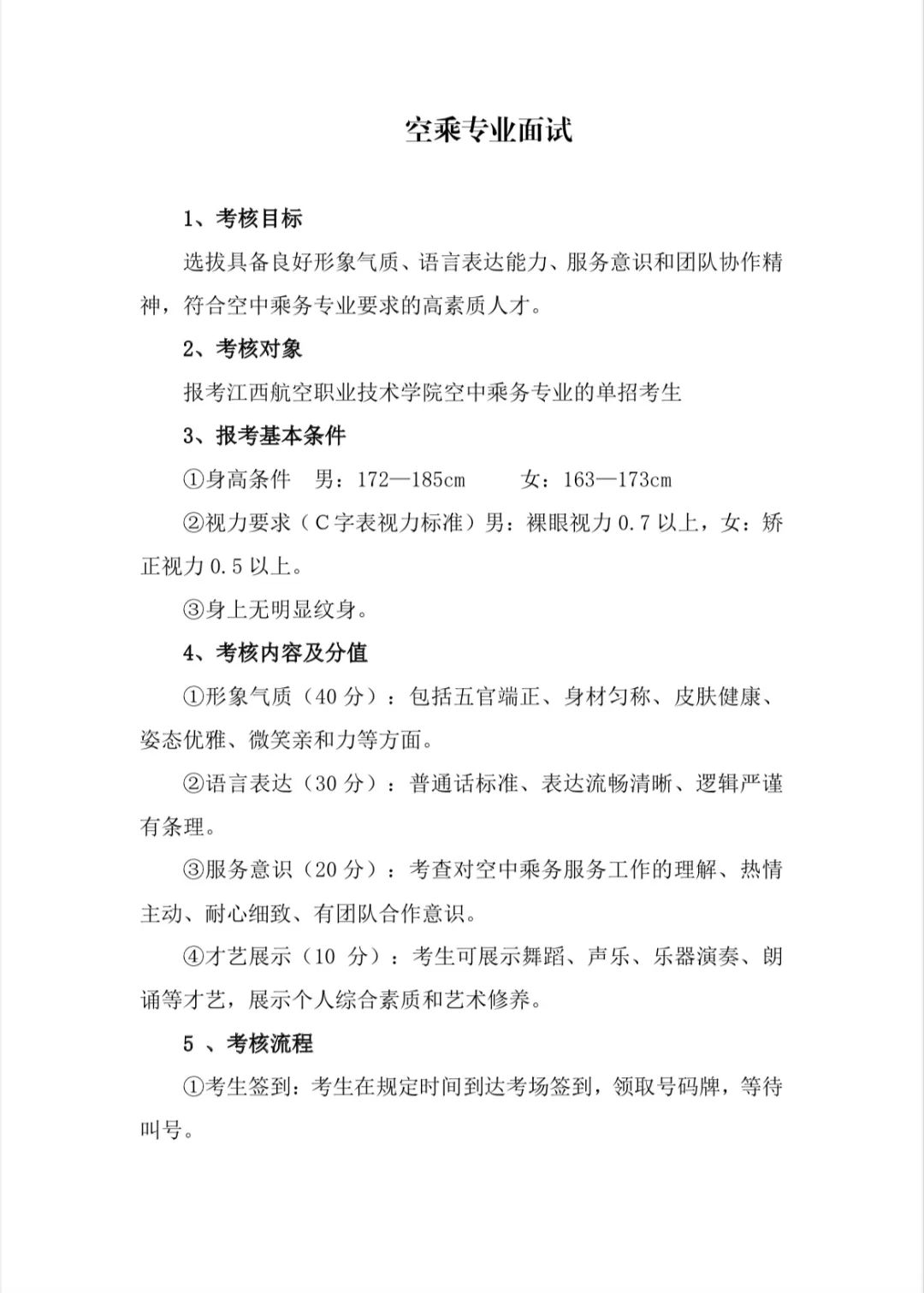 (2)空乘专业面试地点:江西省南昌市青云谱区新溪桥东一路219号江西航空职业技术学院科苑楼。
