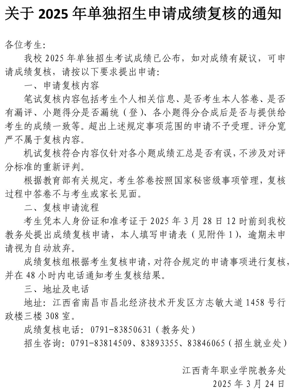 关于2025年单独招生申请成绩复核的通知(2).pdf