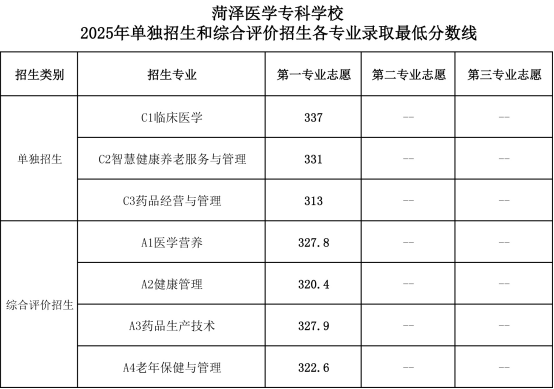 6.我校2025年单独招生和综合评价招生各专业录取最低分数线如下。