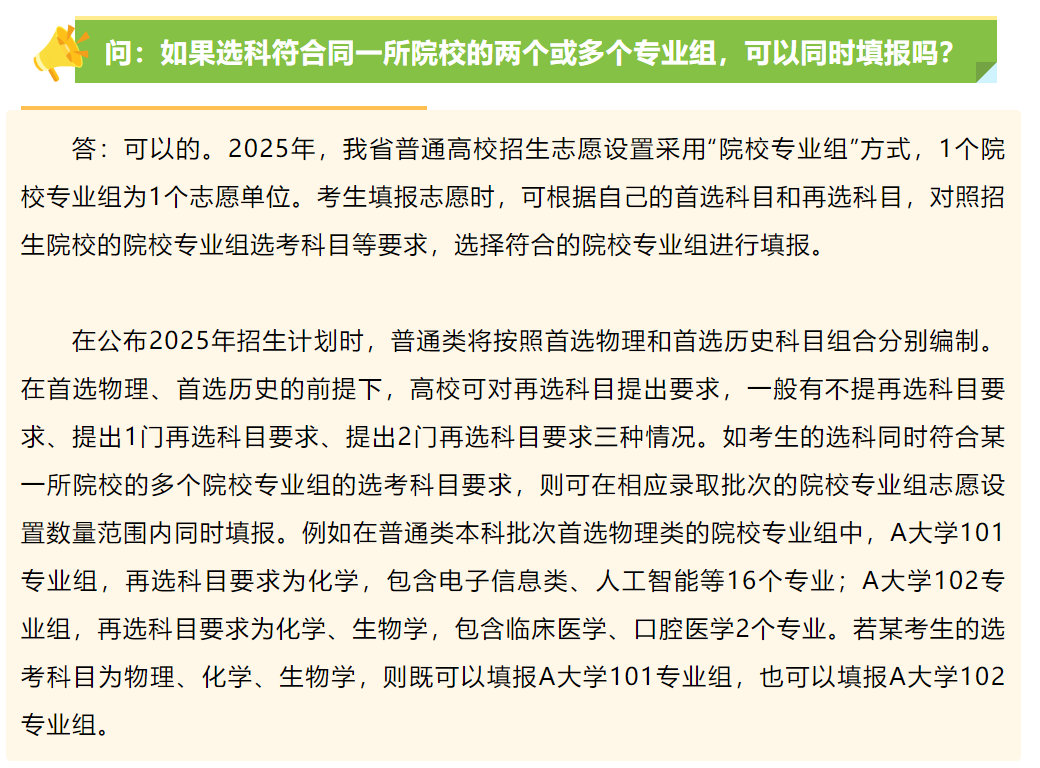 新高考你问我答⑧丨如果符合同一院校的多个专业组选考要求,可以同时填报吗?
