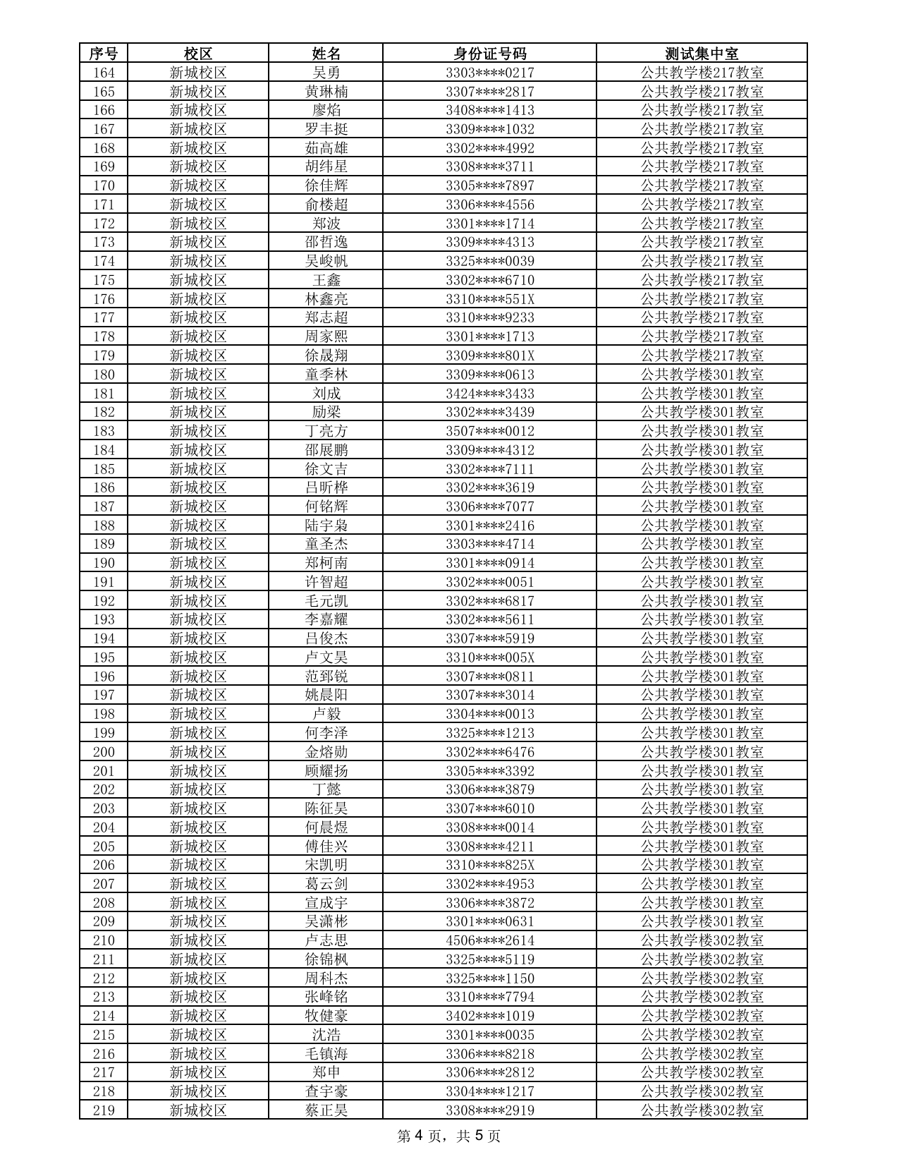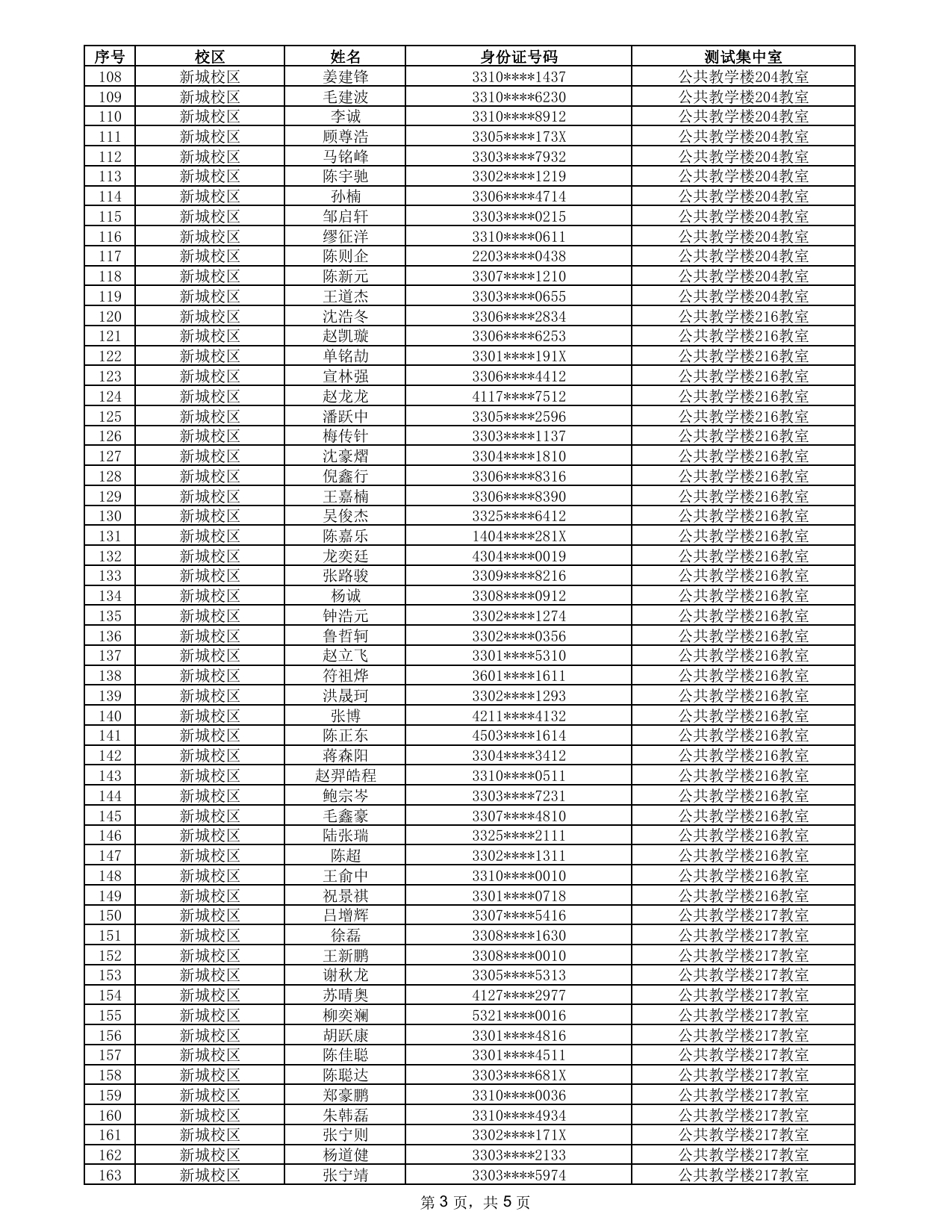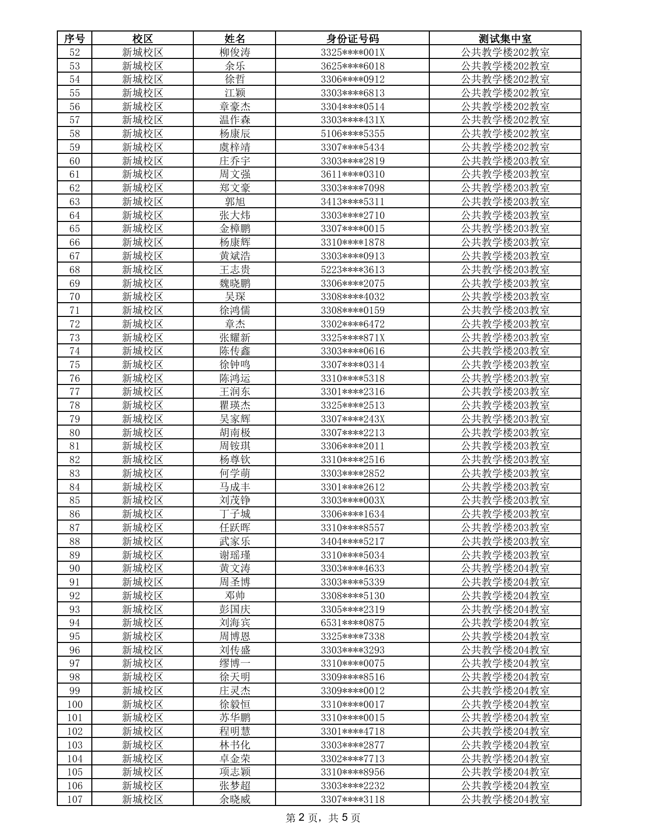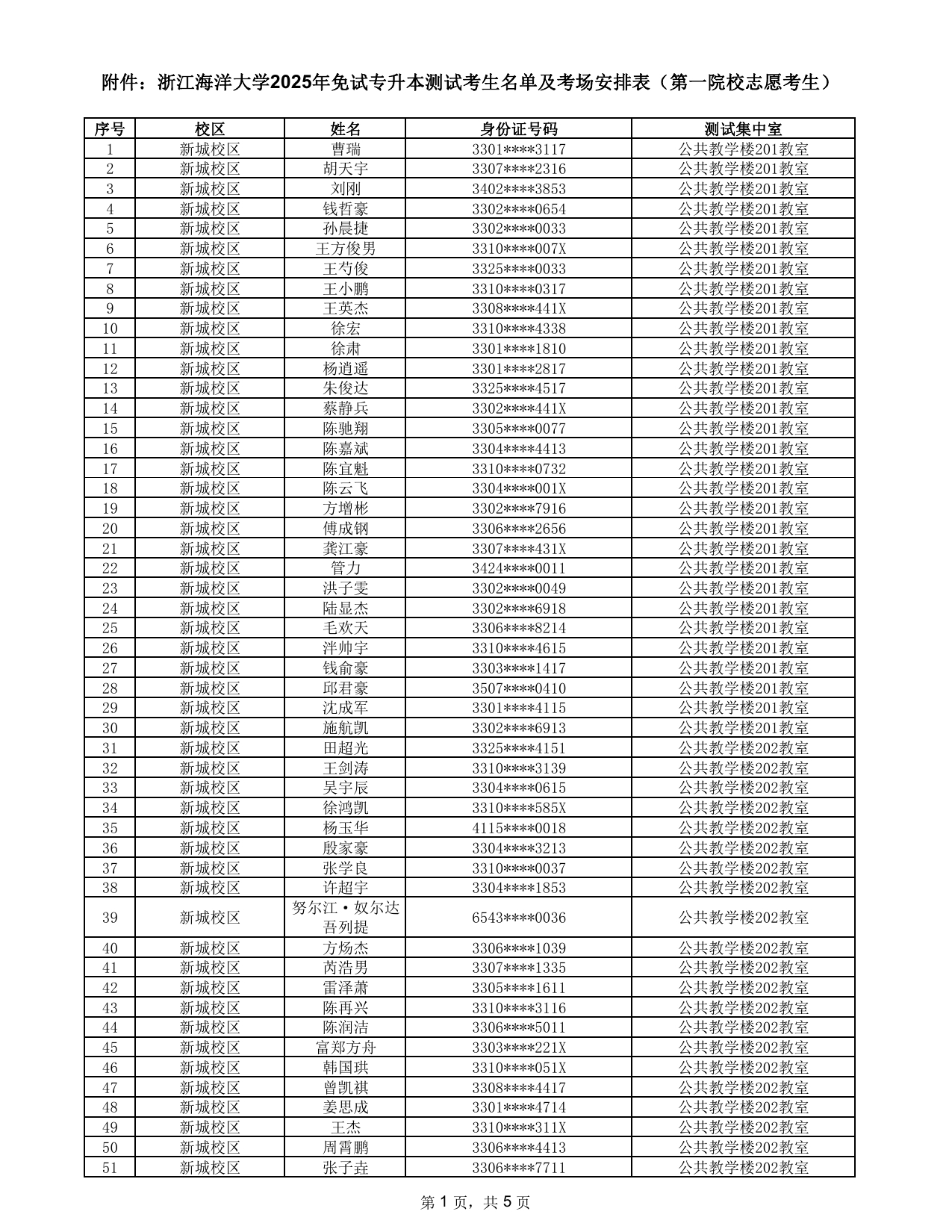 附件:浙江海洋大学2025年免试专升本测试考生名单及考场安排表(第一院校志愿考生)
