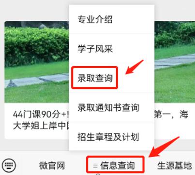 1.关注“zhdzsb”微信公众号——信息查询——录取查询。