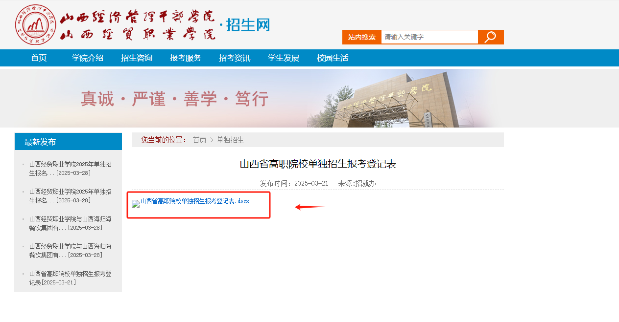 学院2025年单独招生采取网上确认的方式进行,考生须提前下载《山西省高职院校单独招生考生报考登记表》,填写完成后加盖毕业学校公章。现就近期相关问题进行答疑: