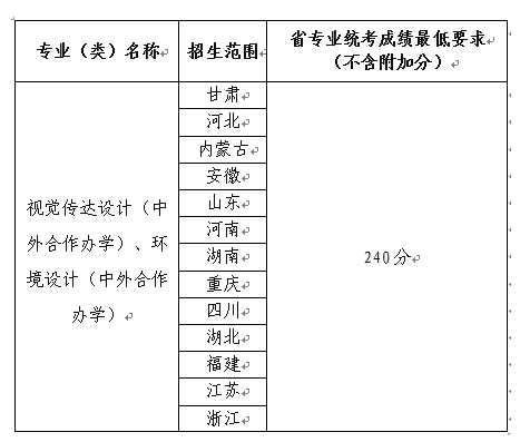 生源省份明确要求按其规定规则进行投档的省份,按其规定进行投档和录取;允许高校自设投档规则的省份,按照综合成绩由高到低录取,综合成绩=高考文化课成绩×50%+专业课总分÷300×750×50%