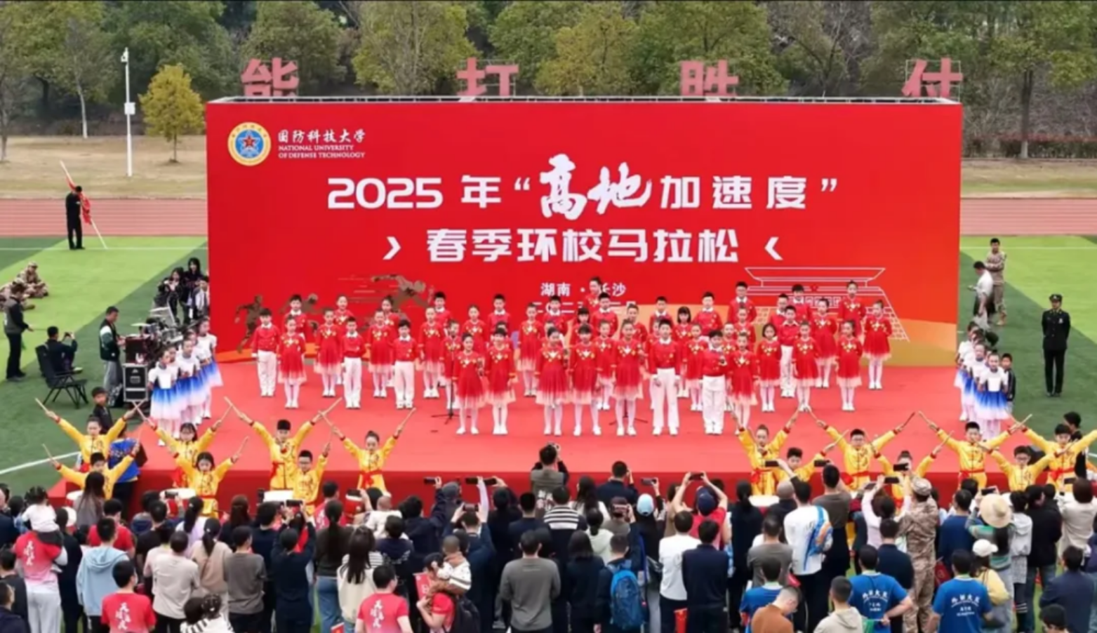 两只游龙劈开晨雾,机器人发令点燃人潮。3月23日上午9点,迎着春风,九箭齐发,国防科大2025年“高地加速度” 春季环校马拉松正式拉开序幕。
