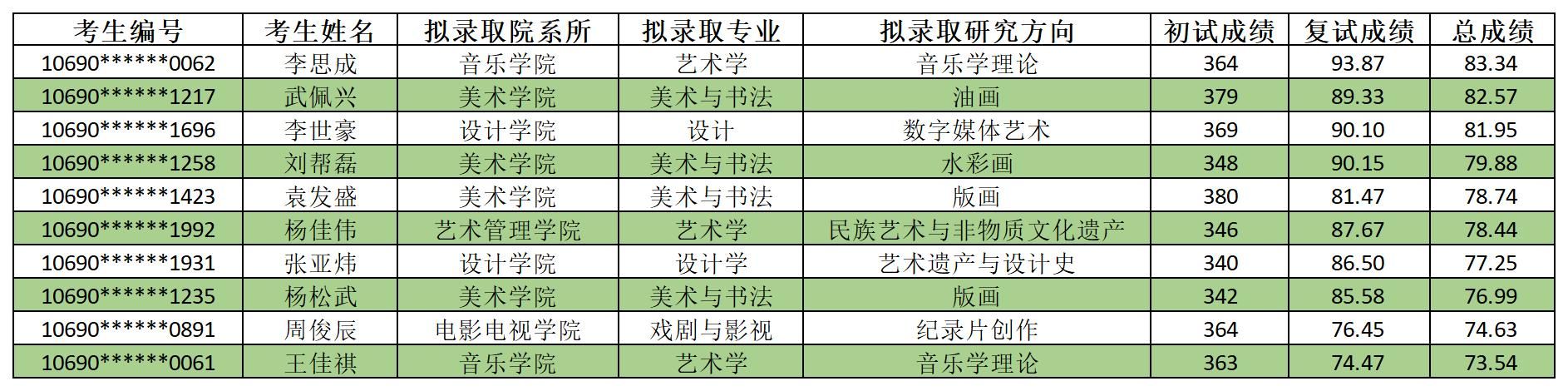 一、云南艺术学院2025年硕士研究生招生第一志愿拟录取名单