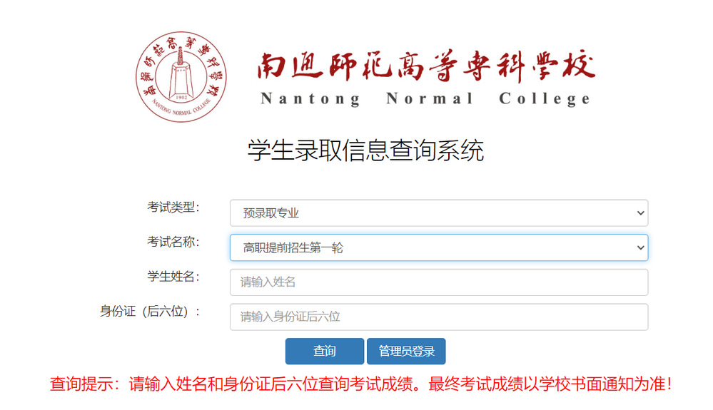 成绩查询网址:https://sflqcx.ntnc.edu.cn/search/gysearch.html