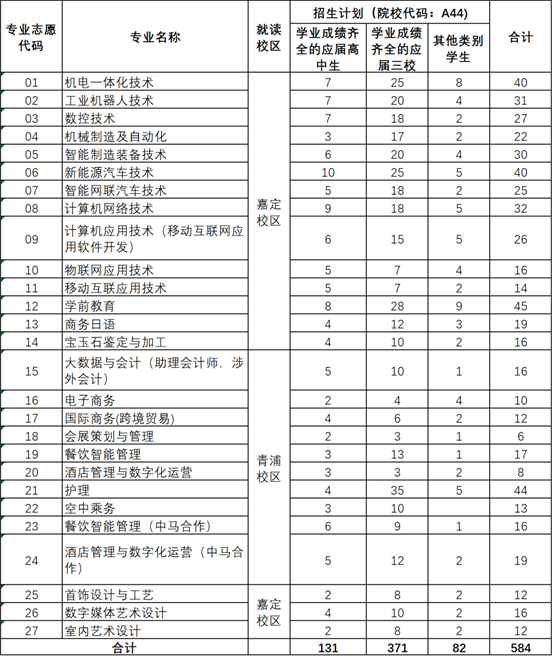 2025年我校自主招生批次第一次征求志愿开启,本次征求志愿584名,其中学业成绩齐全的应届高中生131人,学业成绩齐全的应届三校生371人,其他类别学生82人以进档考生所填报的第一专业为录取专业。招生专业含一般及艺术类共计27个。