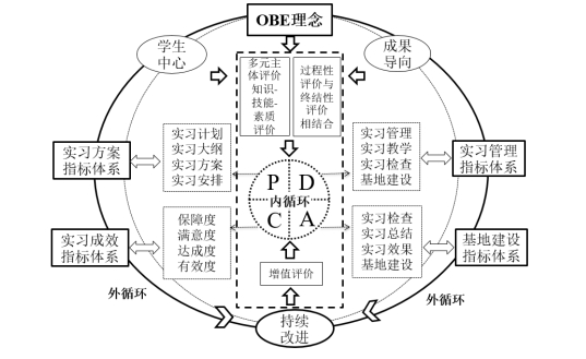 武汉工商学院教学质量监测与评估中心立足新一轮本科教育教学评估背景,选择了“不同类型高校实践教学环节评价指标体系研究与实践”作为选题方向,开展对本科高校院系自我评估体系的实践探索与研究。该课题聚焦专业综合实习评价内涵质量不高、结构逻辑性不强两大问题,以专业综合实习评价体系为研究对象,研究以OBE理念为外循环框架嵌入PDCA内循环的评价体系,建立计划(P)、执行(D)、考核(C)、改进(A)四个阶段的专业综合实习过程评价指标,以内外循环的持续改进为交叉点,构建融合OBE和 PDCA循环评价的框架结构,旨在进一步开展全面性、过程性和动态性专业综合实习评价,为提升复合型应用型人才的培养质量提供科学指引。