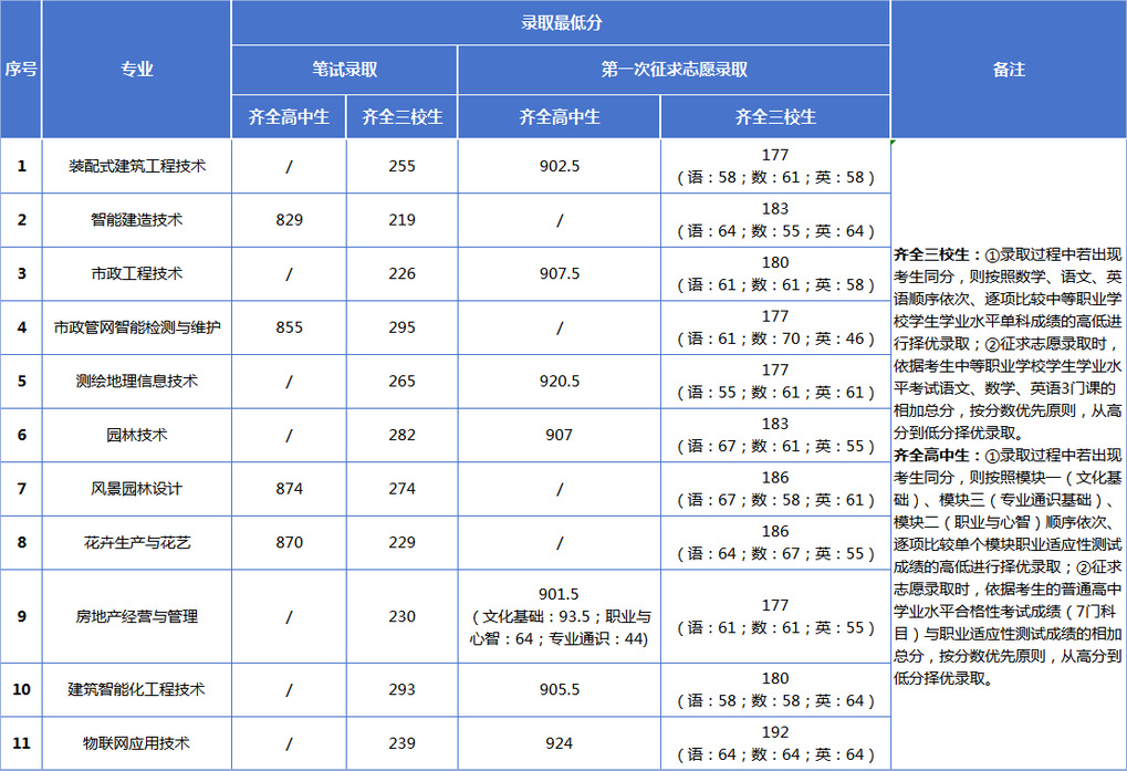 2025年专科层次依法自主招生录取最低分