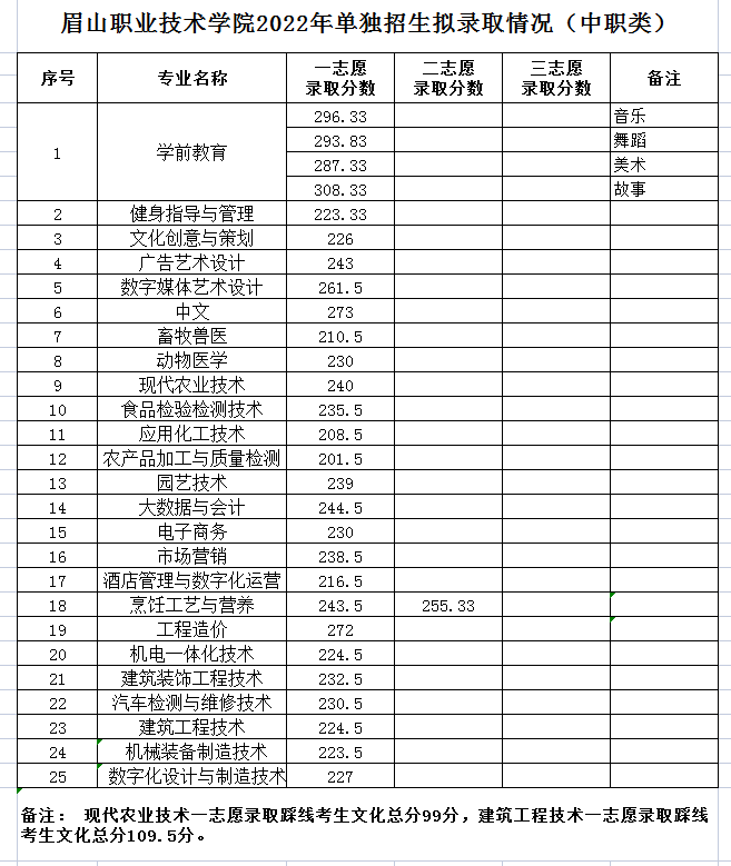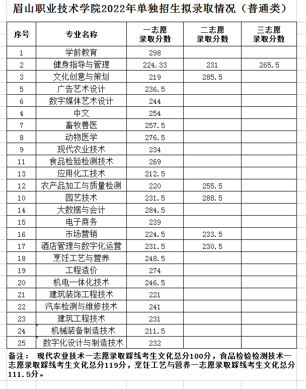 我校2022年高职单招录取工作已结束,根据我校《2022年高职教育单独考试招生章程》有关规定, 文化控制线上考生,分普高、中职两类,根据“志愿优先、择优录取”的原则,按专业志愿顺序,从高分到低分择优录取,我校计划录取2830人,实际录取2830人,现将各专业拟录取分数公布如下: