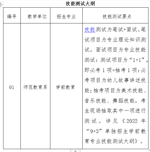 附件:2022年“9+3”单独招生学前教育专业技能测试大纲