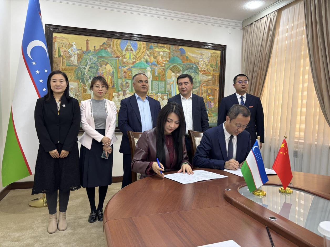 与塔什干化工学院在乌教育部进行会谈,并在乌教育部第一副部长达利耶夫和能源部副部长科比洛夫见证下签署合作备忘录和共建联合实验室协议