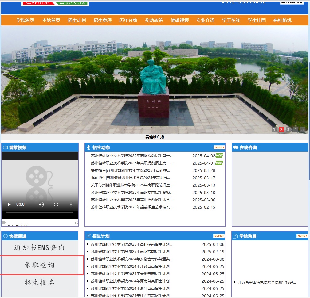 苏州健雄职业技术学院2025年高职提前招生第一轮拟录取结果已出,考生可登录我院招生网录取查询系统(见下图),输入本人考生号和姓名,即可查询自己的拟录取信息。最终录取名单请以江苏省教育考试院正式公布为准。如有问题,可咨询我院招生办公室,电话:0512-53940832、53940813。