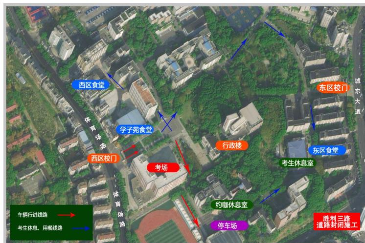 车辆行进路线图,考生休息区、考生用餐线路图。(见附件3)