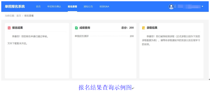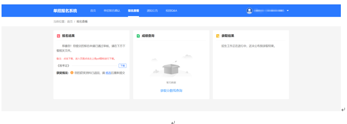 2、4月23日,考生登录学院单招报名系统,查看预录取信息。