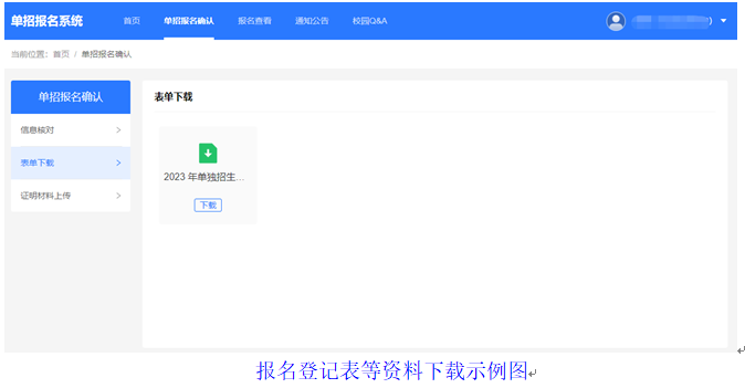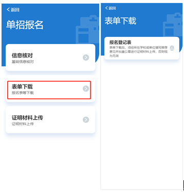 报名确认后,点击“表单下载”进行相关表项下载;(报考登记表)