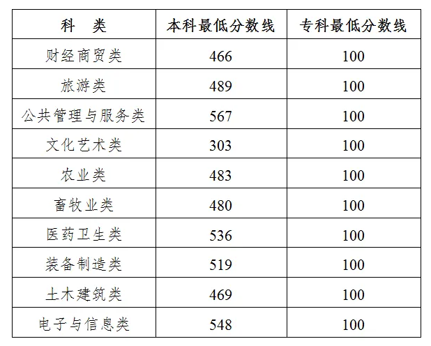 研究确定,现将2025年高职分类考试分数线公布如下:1.2025年吉林省高职高专单独招生统一考试职业技能测试资格线为80分。2.2025年吉林省普通高校对口招生统一考试各科类、批次录取最低控制分数线见下表: