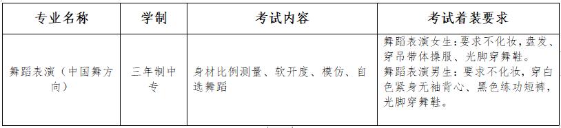 舞蹈表演专业自备考试服装及舞蹈伴奏U盘(U盘里只保存一首伴奏音乐)。