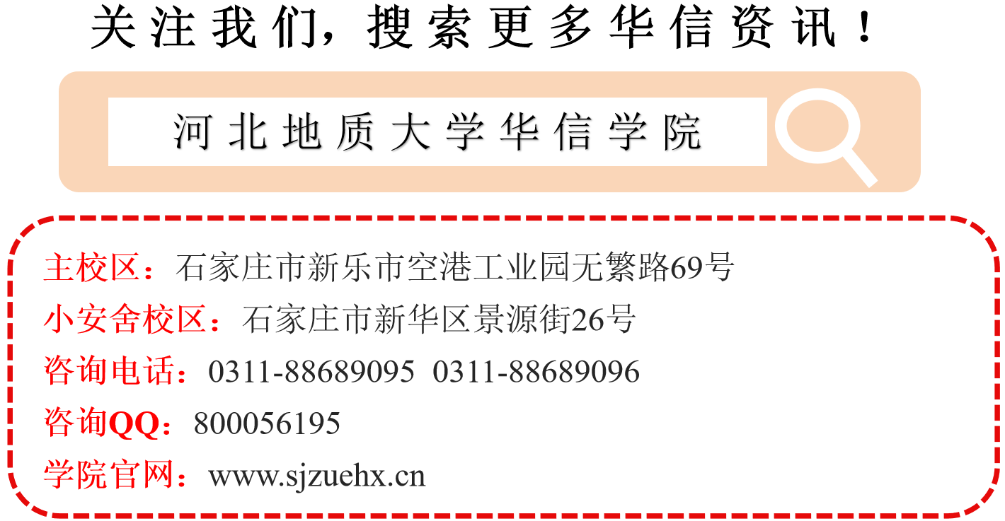 河北地质大学华信学院成立于2001年,是经教育部和河北省人民政府批准设立的全日制普通本科高等学校,办学类型为独立学院。学院建校以来,始终坚持特色应用型本科教育的办学理念和“以人为本、紧贴市场、突出特色、强化就业”的办学思路,以建成拥有现代化办学设施和鲜明办学特色的一流综合性高等学校为目标,坚持以提高人才培养质量为中心,创新人才培养模式,积极服务区域经济社会发展。