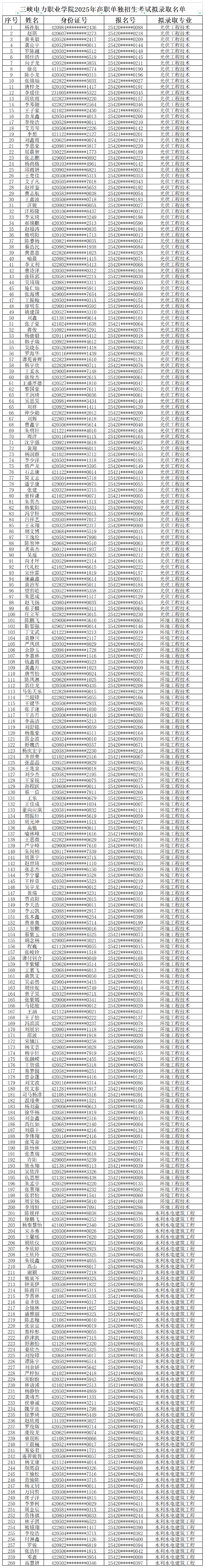 根据《湖北省教育厅关于做好2025年高职院校单独考试招生工作的通知》(鄂教职成函〔2025〕3号)和《三峡电力职业学院2025年高职单独考试招生章程》要求,我校2025年高职单独招生各专业拟录取名单公示如下,公示期7天(2025年4月7日—4月13日)。公示期内,如有异议,请向学校相关部门反映。