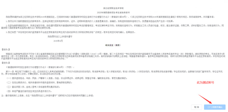 第三步,网上签订“诚信考试承诺书”,考生阅读后点击“同意并确认”,即视为已经仔细阅读并同意以上承诺。