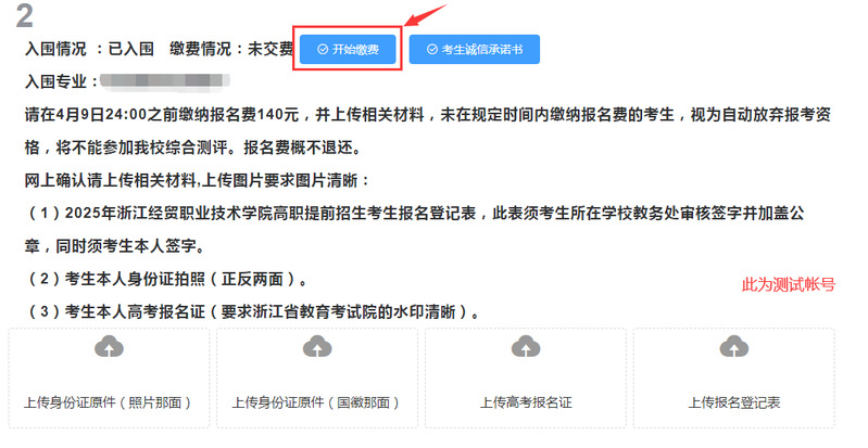 【温馨提醒】缴费之前请务必核对姓名是否本人,缴费之后刷新“提前招生辅助系统”,显示“已缴费”,表示缴费成功。