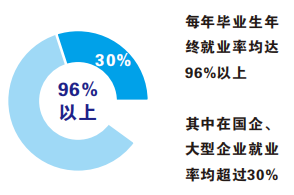 答:我校高度重视就业工作,2021年5月,在省新建高校毕业生就业统计培训会上学校就业工作获得省厅的表场。历年来就业率高达96%以上,国企央企30%以上。