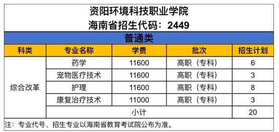 2024年资阳环境科技职业学院海南省招生计划出炉!