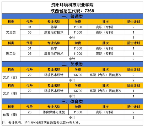2024年资阳环境科技职业学院陕西省招生计划出炉!