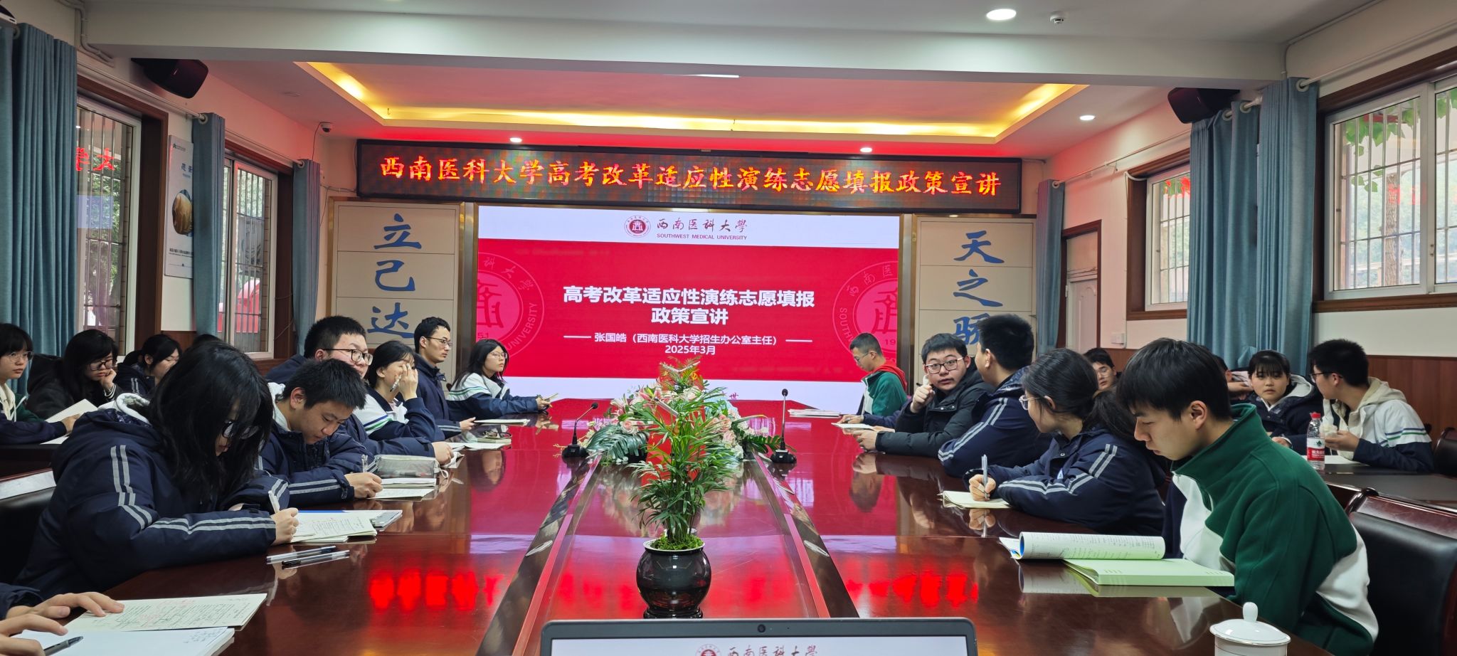 3月9日,西南医科大学招生办公室主任张国皓一行走进泸州市天立学校,为高三学子们带来一场新高考“适应性演练”志愿填报专题宣讲会。此次活动旨在帮助高三学生更好地理解新高考招生政策,科学理性填报志愿。