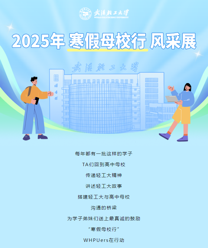 回望初心 启迪未来 | 武汉轻工大学2025年“寒假母校行”风采展(第八期)https://mp.weixin.qq.com/s/fjxJXDJtjaR9ln6BXhUPVg