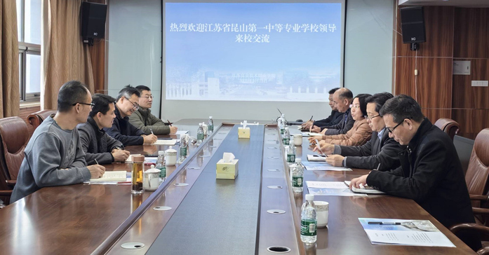 3月12日,江苏省昆山第一中等专业学校校长陈昌明、副校长戴文彬等一行4人来我校调研交流。校长李桂萍、副校长吉智出席交流活动,教务处、产教融合办公室、智能制造与应急装备学院等相关部门负责同志参加活动。