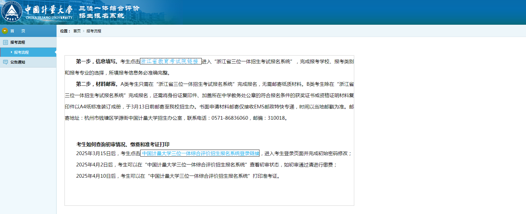 恭喜你获得中国计量大学2025年三位一体招生综合素质测试资格!请通过我校三位一体招生书面评审并完成缴费的考生于4月13日(周日)来校参加测试。有关事项具体如下: