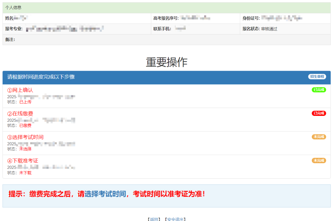 网上确认和缴纳报名考试费流程