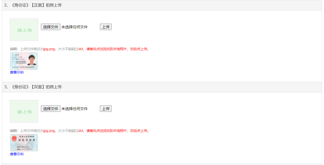 3.上传身份证原件正反面照片。