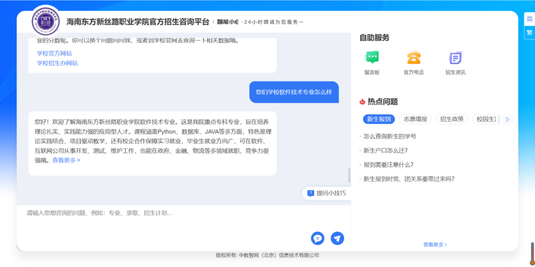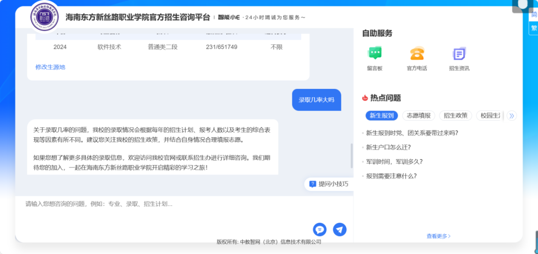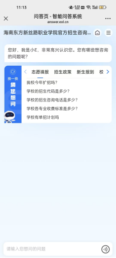 【海南东方新丝路职业学院】智能招生问答系统开通