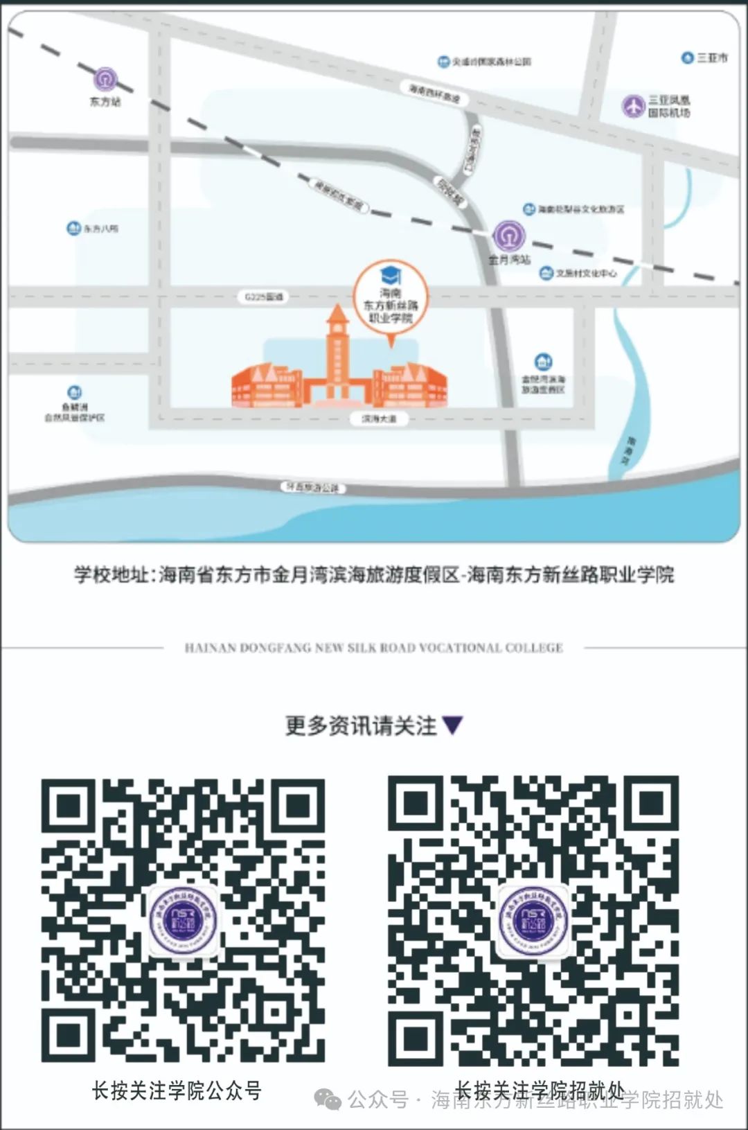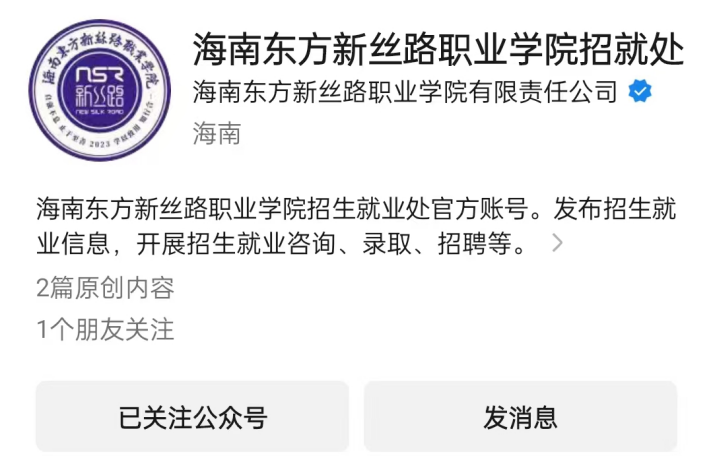 各位学子及家长可通过【海南东方新丝路职业学院】招生官网、微信公众号两种方式进行在线咨询。