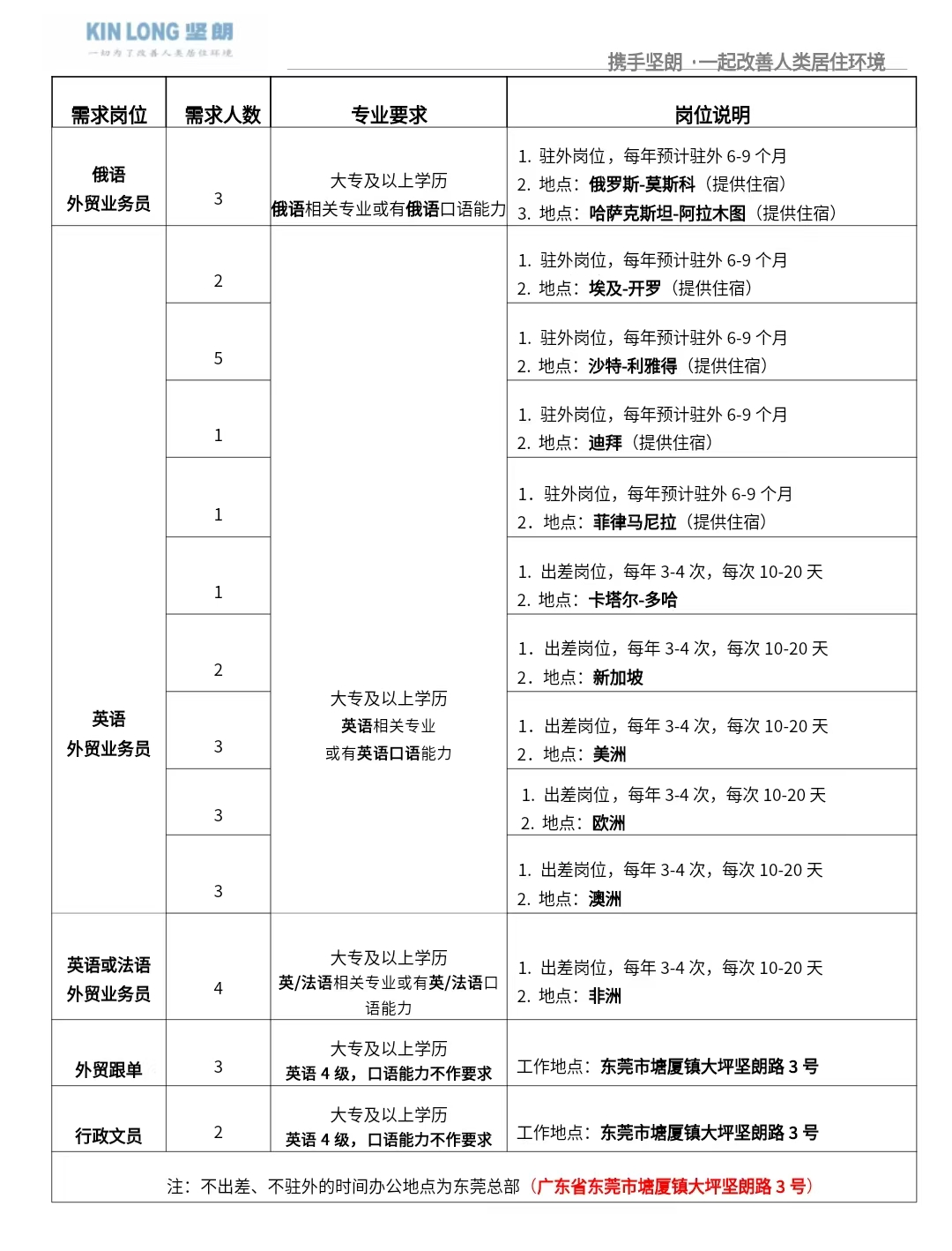 外贸业务员:基本综合薪资 4500-4800 元/月+业绩提成奖金+5500-6500 的驻外工资。