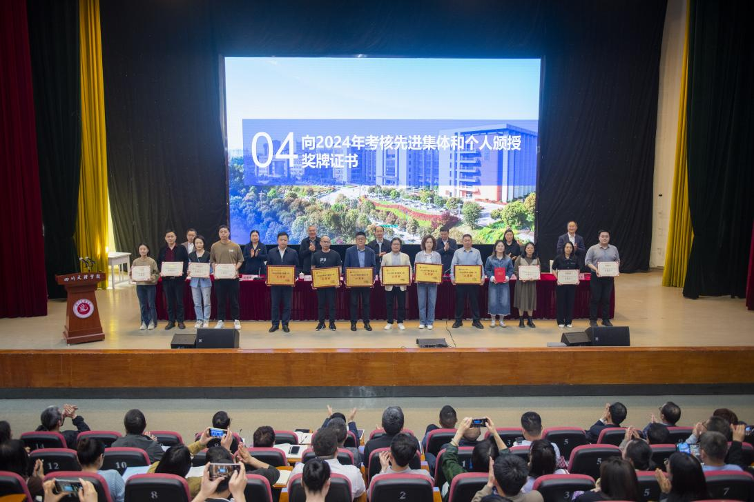 徐晓宗宣读四川文理学院2024年毕业生就业工作绩效考核结果。程碧英作题为《盘点成绩正视差距聚焦目标再创佳绩》学校“就业-招生-培养”联动工作汇报。