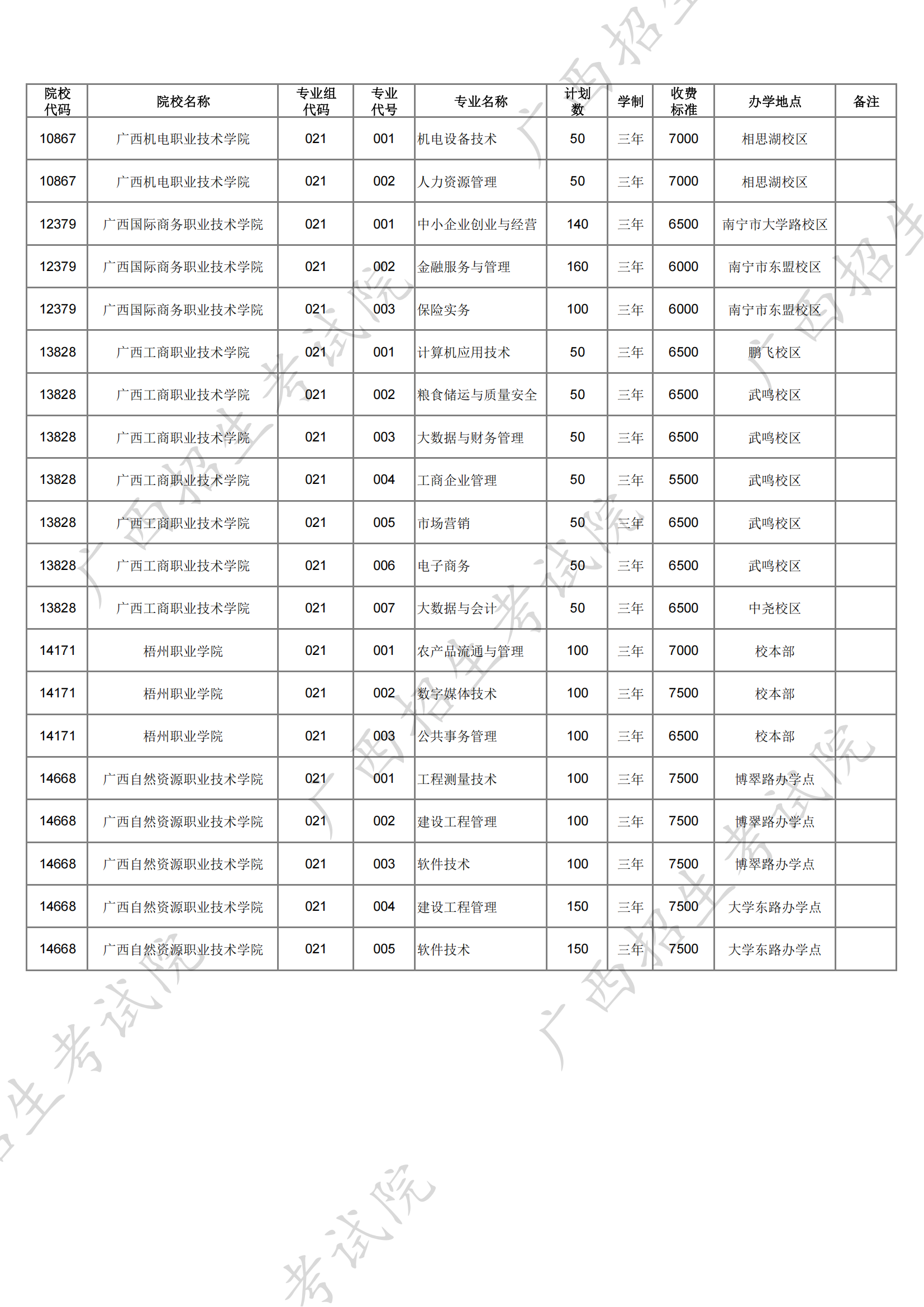广西2025年退役军人高职单招计划信息表