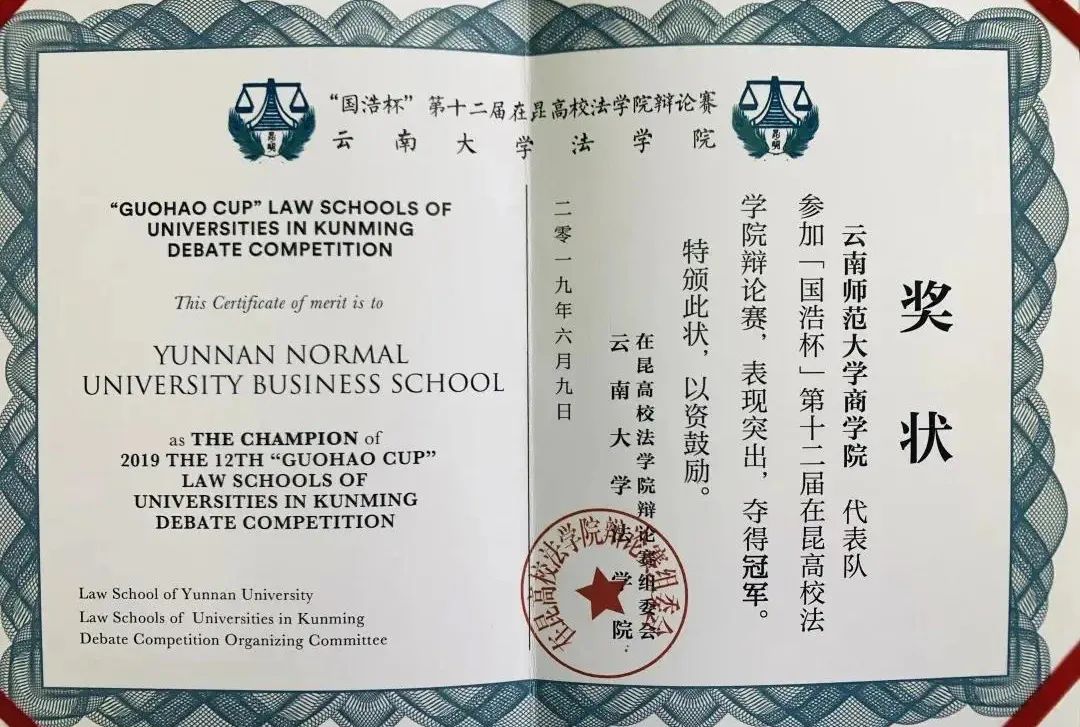 法学院辩论队荣获第十二届“国浩杯”在昆高校法学院辩论赛冠军