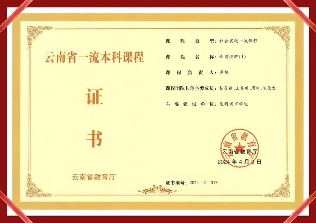 《诉前调解(1)》《刑事案件法庭调查仿真实验》两门课程认定为省级一流本科课程