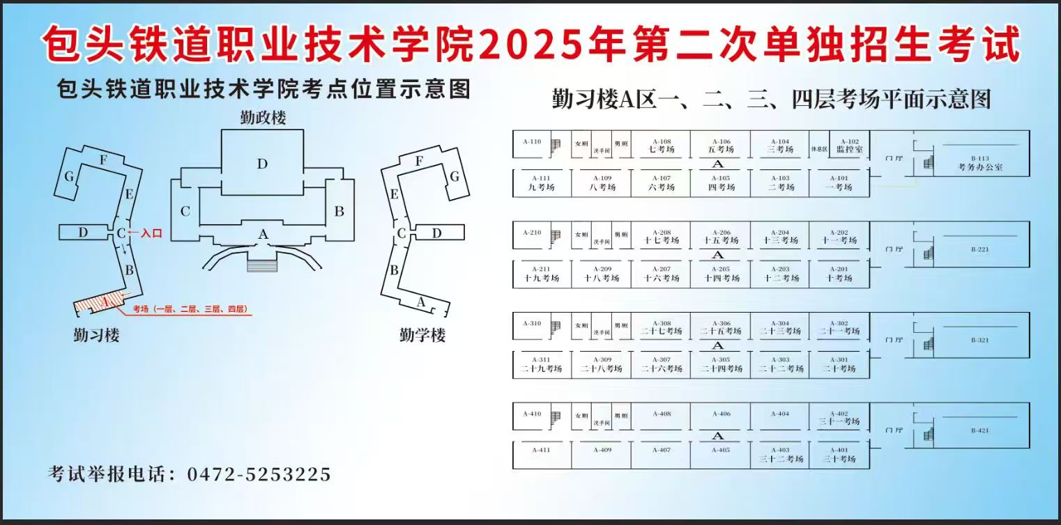 包头铁道职业技术学院2025年第二次单独考试招生考场示意图