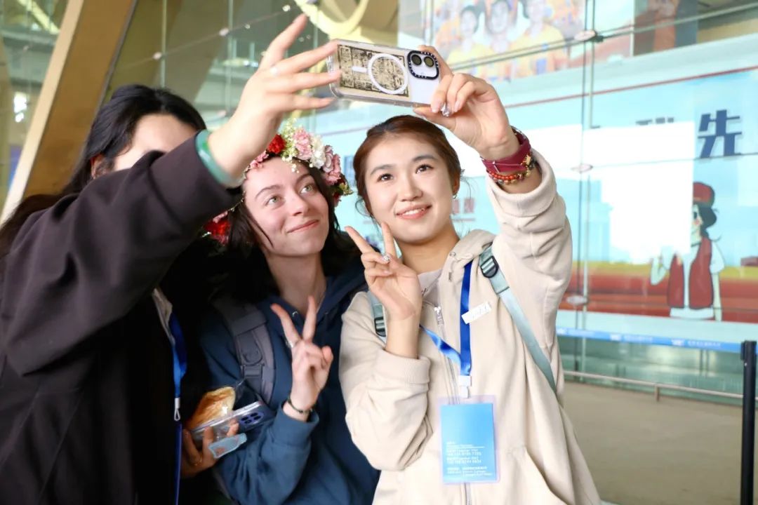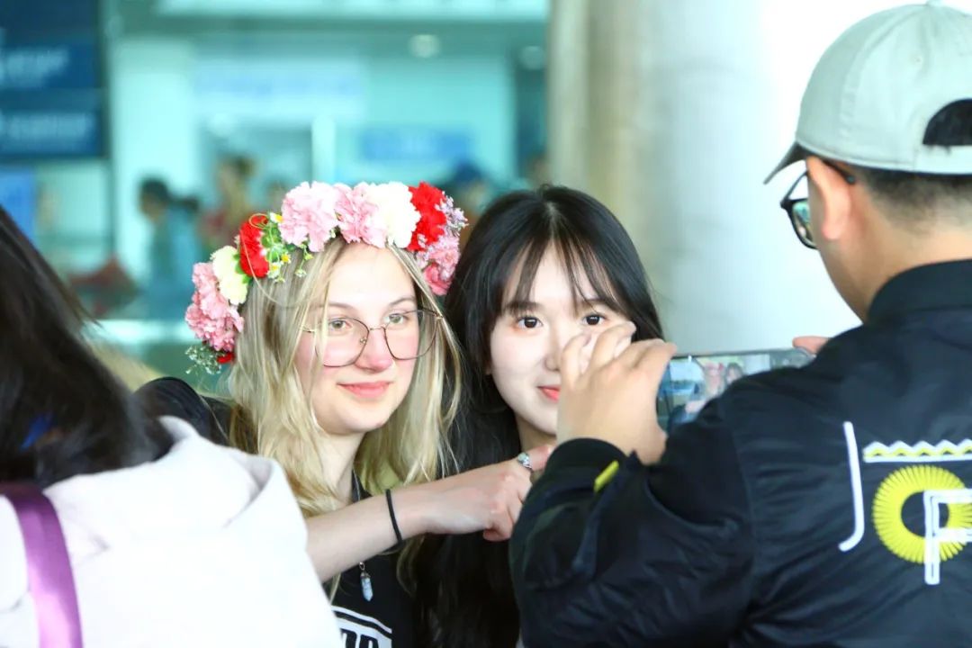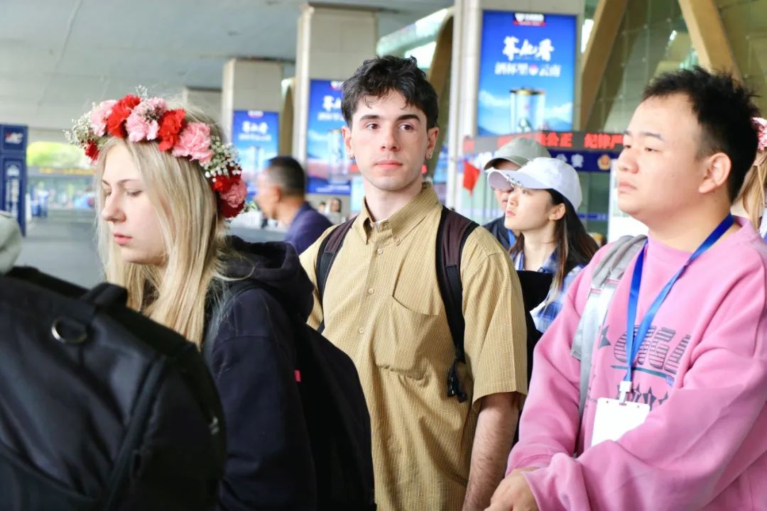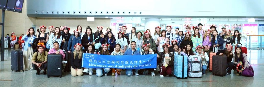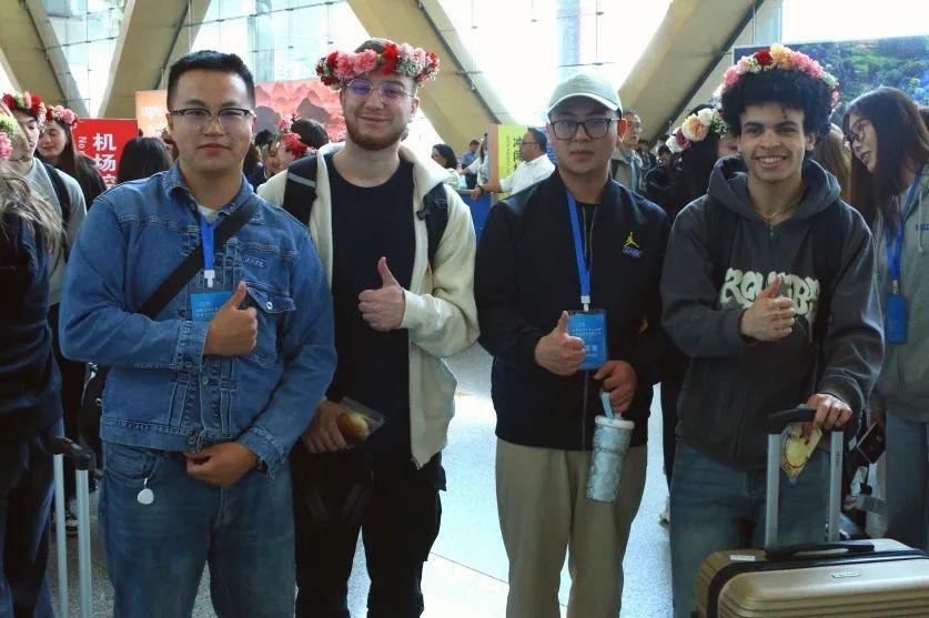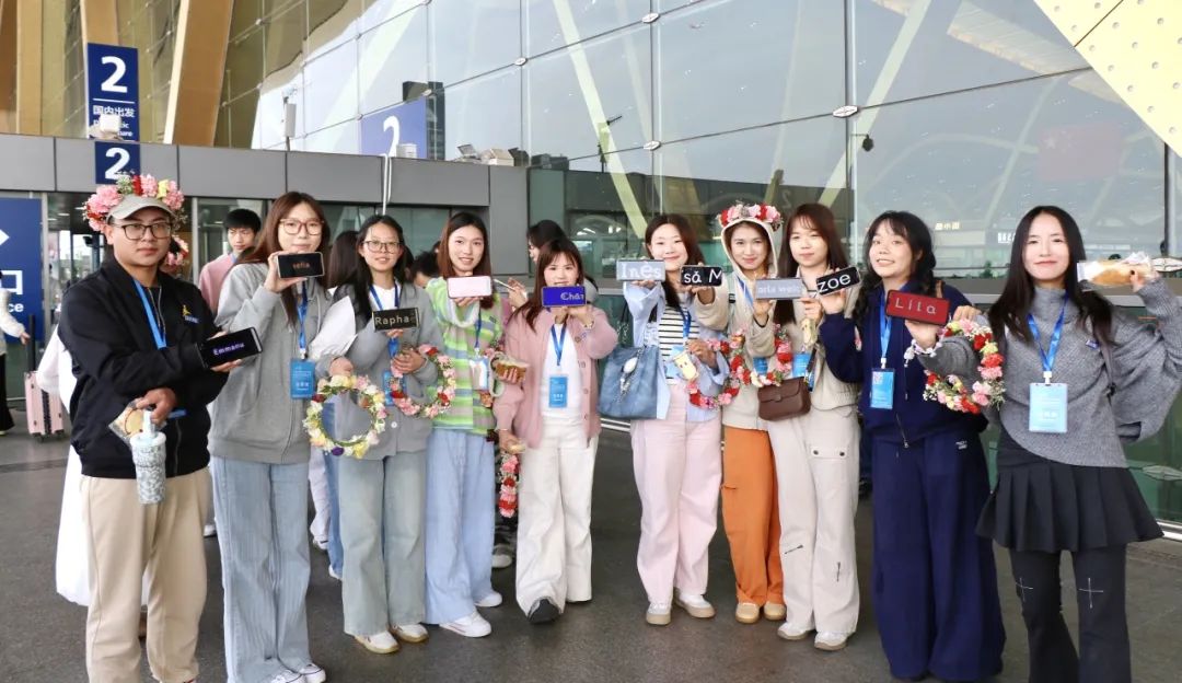2025年4月8日,法国阿尔图瓦大学学生代表们抵达昆明长水国际机场,滇池学院的志愿者们早早等待在到达出口,高高举起精心制作的接机牌,翘首以盼着法国小伙伴们。