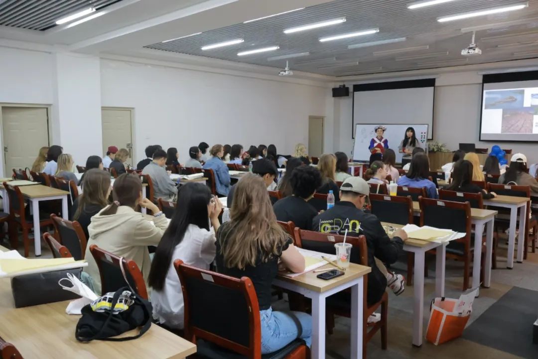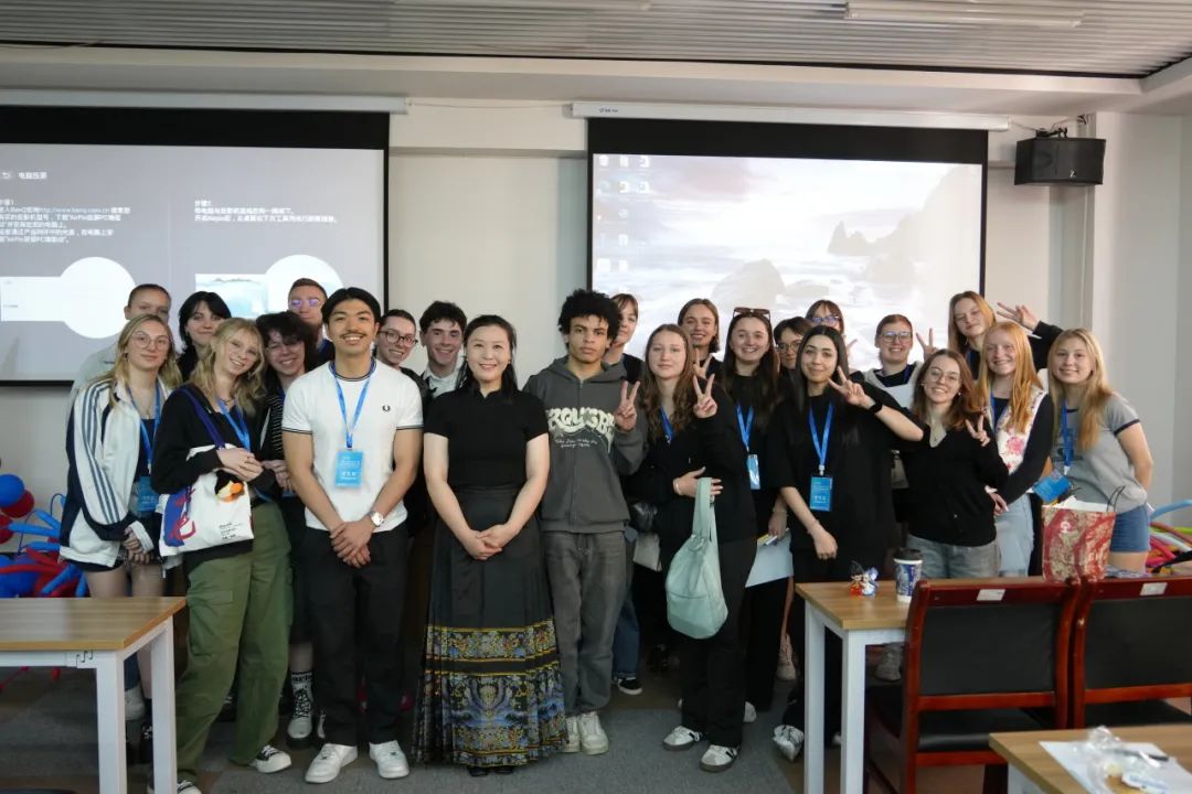 大家感受了近年来风靡全球的“中国国潮文化”,授课教师身着马面裙,介绍了中国本土产品和出圈影视作品。