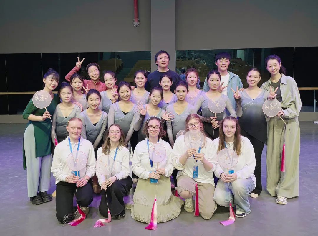 4月9日晚,法国阿尔图瓦大学的学生代表们齐聚杨林校区小剧场,体验了中国舞,感受到了东方美学的气韵。在马文静教授和舞蹈系老师们的教学指导下,法国学生们从最基础的手势和步伐学起,尝试了古典舞的经典舞蹈动作,在欢快的节奏中感受到了舞蹈的乐趣和少数民族的热情。