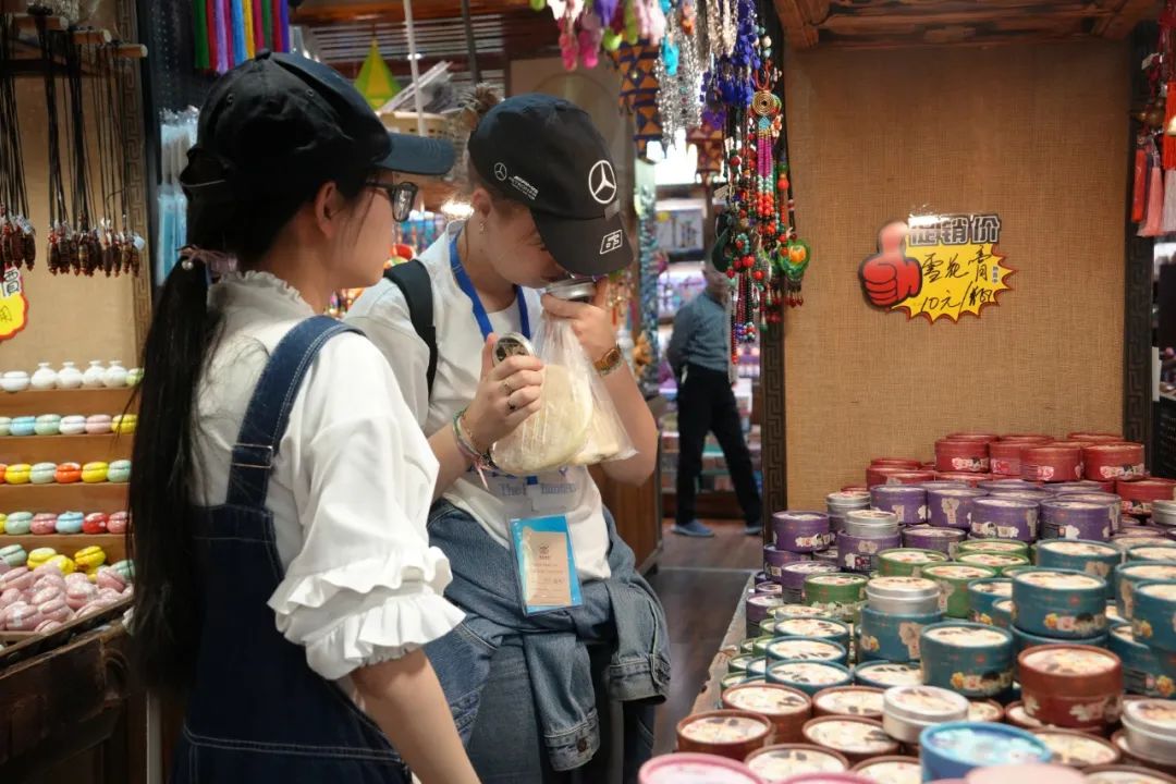 随后,中法学生们来到具有千年历史的官渡古镇,在这里,同学们参观了云子围棋博物馆和独特的历史古迹,一起品尝了云南特色小吃"官渡粑粑",体验了乌铜走银等非遗技艺。漫步在青石板路上,学生们被飞檐翘角的明清建筑群所吸引,沉浸式感受云南的历史文化魅力。