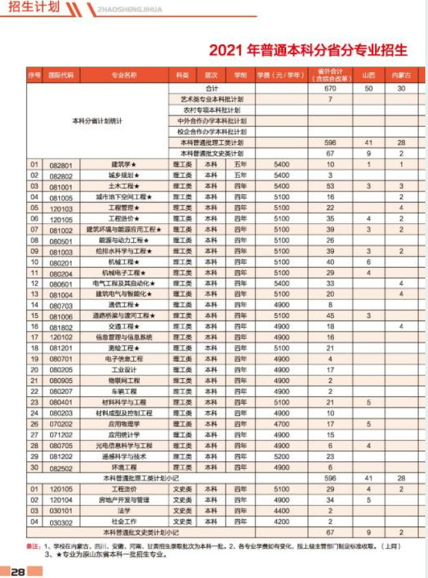 山东建筑大学2021招生简章