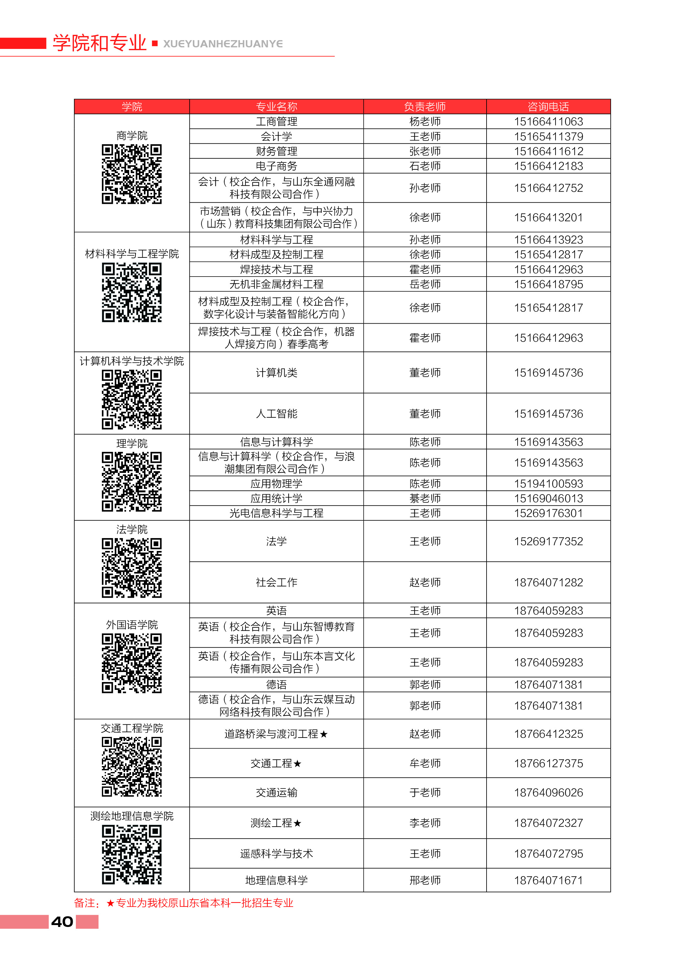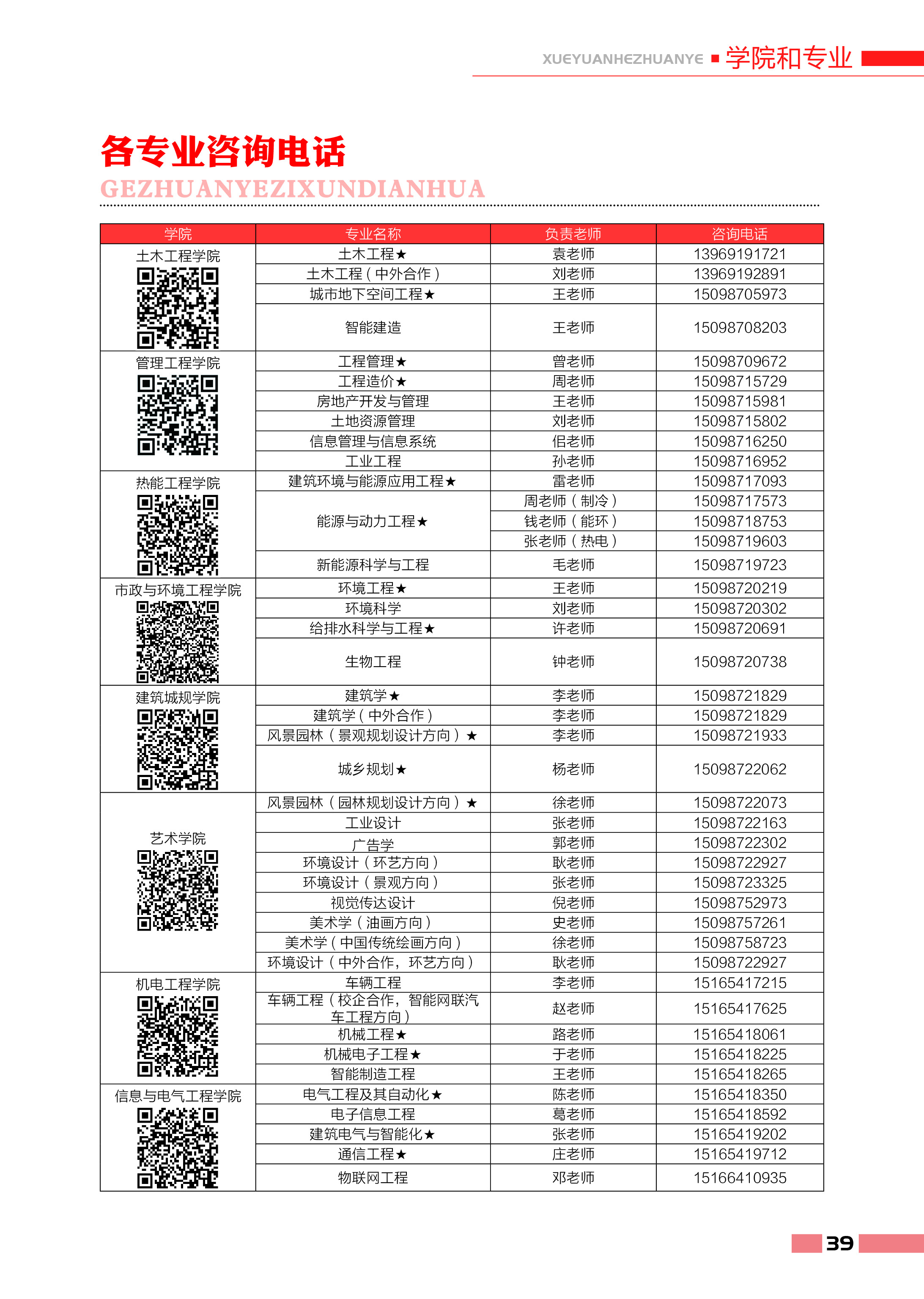 各专业咨询电话
